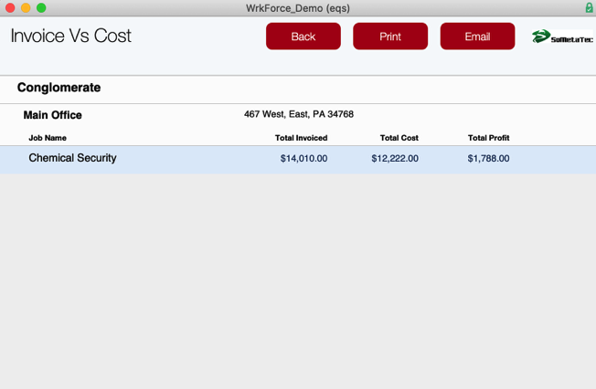 With time and material information entered into the job, you can run a report that creates an invoice vs cost spreadsheet. We have built other reports as well.