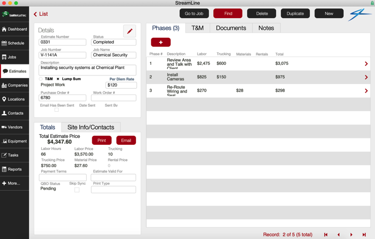 Build estimates in StreamLine and send them directly to customers via email. If the estimate is approved, you can convert it to a job to save you time.